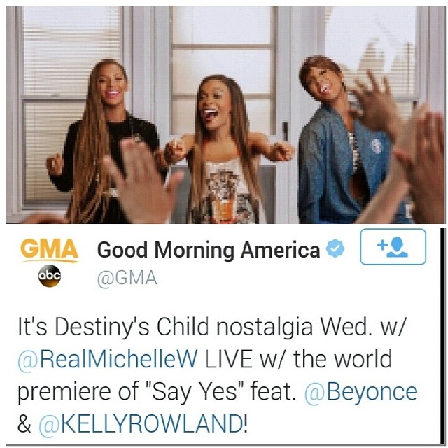 Michelle Williams will make an appearance on ABC’s Good Morning America to premiere the new video for “Say Yes” featuring Kelly Rowland and Beyoncé. The video, directed by filmmaker Matthew Cherry, will make it’s debut on Wednesday during the live show of GMA. Be sure to tune in Wednesday morning! Bonus: Michelle has posted photos from the set of “Say Yes” on her official site IAmMichelle.com. Check them out!