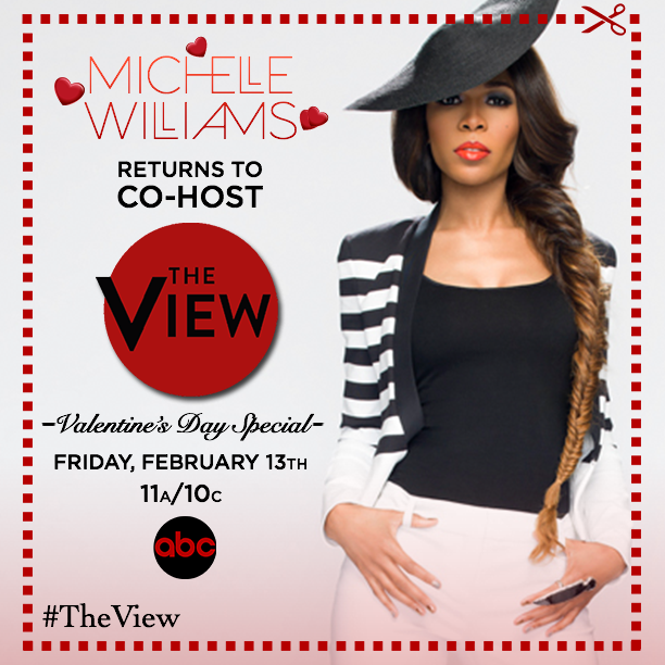 All posts Michelle Williams to return to The View!!! February 11, 2015 / Michelle Williams will co-host The View on Friday, February 13th on ABC at 11AM EST. This will be Michelle’s fourth time joining the hosting panel. Make sure you watch and support Michelle!